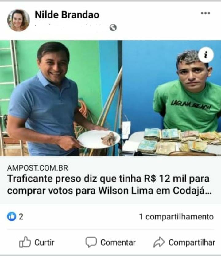 Leonilde já até publicou em seu Facebook negativas contra o atual Governador Wilson Lima, vejo abaixo: